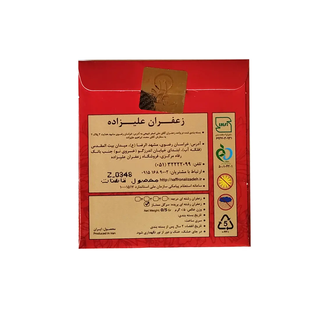 بستهبندی ویژه زعفران علیزاده با طراحی زیبا و ظاهری شکیل، علاوهبر جذابیت بصری، از ورود هوا و رطوبت جلوگیری کرده و تازگی زعفران را تا لحظه مصرف حفظ میکند. این بستهبندی استاندارد، انتخابی مطمئن برای مصارف خانگی، هدیه و یا صادرات است.